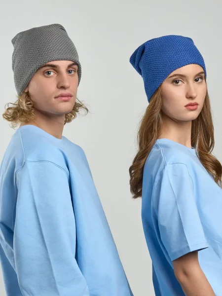 Morbido berretto lungo in acrilico, lavorato a maglia con una caratteristica struttura a nido d’ape che ne esalta texture e stile. Il doppio strato garantisce comfort e calore, mentre il design allungato lo rende perfetto per completare look street e casual con un tocco moderno e rilassato.