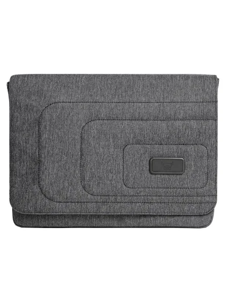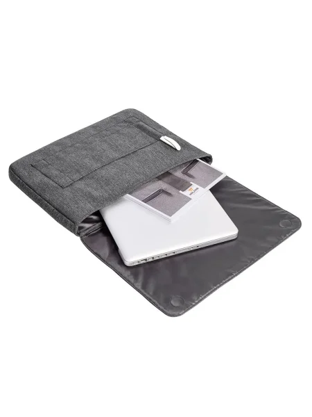 Custodia pc portatile personalizzata Halfar: imbottita e trapuntata sul fronte, con supporto HFL® per logo. Ideale per notebook e taccuini A4, dotata di tasca anteriore piatta, portapenne e scomparto con zip sul retro per documenti A4. Chiusura magnetica. Composizione: 100% Poliestere 900D.