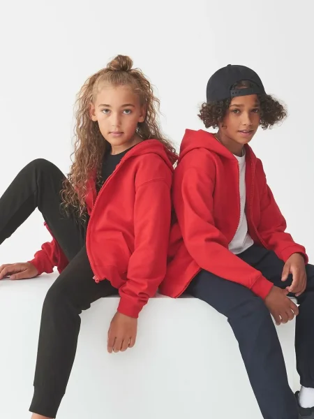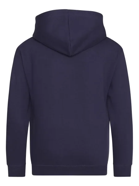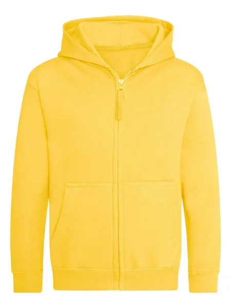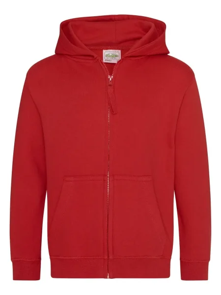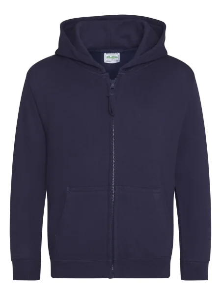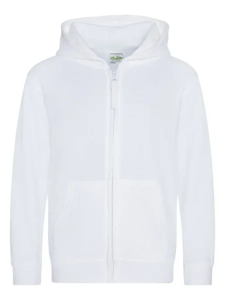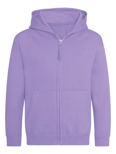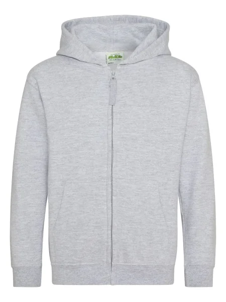 Felpa Kids Zoodie Just Hoods AWDis.Felpa da bambino con cappuccio a doppio strato, cerniera tono su tono nascosta, tasca a marsupio, maniche e vita con polsini, etichetta strappabile. Produzione certificata WRAP (Worldwide Responsible Accredited Production).