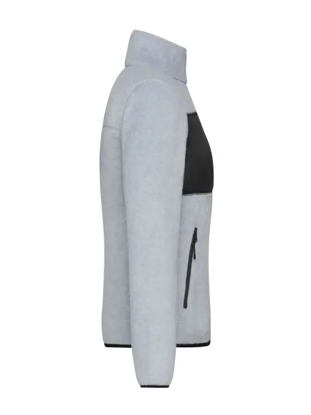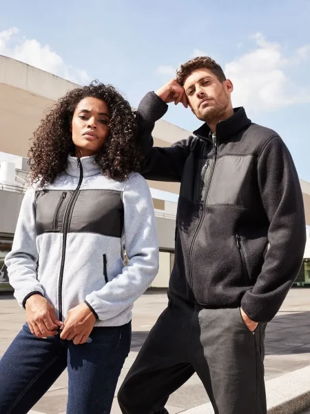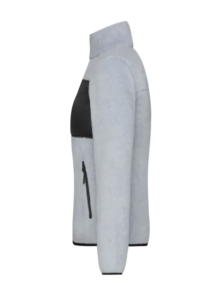 Queste felpe aziendali in poliestere pile morbido sono di facile manutenzione nel loro poliestere riciclato. Crea felpe lavorative con questo modello leggermente sciancrato, con l'inserto in tessuto, il taschino sul petto, due tasche laterali e un taschino sul petto con cerniera, due tasche interne, la zip frontale a doppio cursore, il collo alto e la zip YKK.