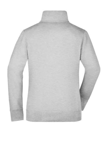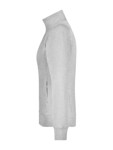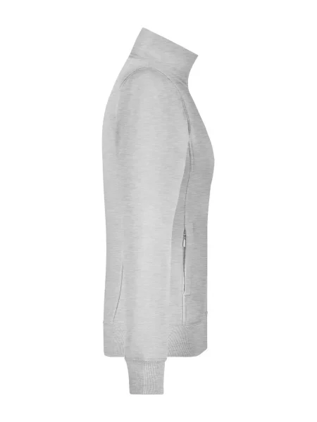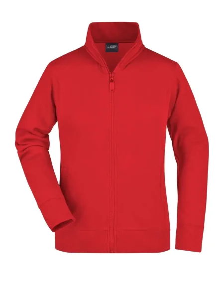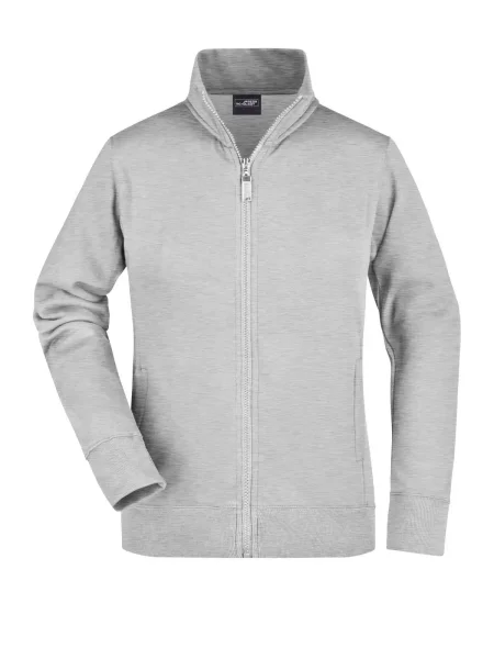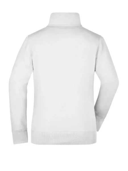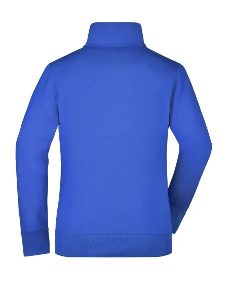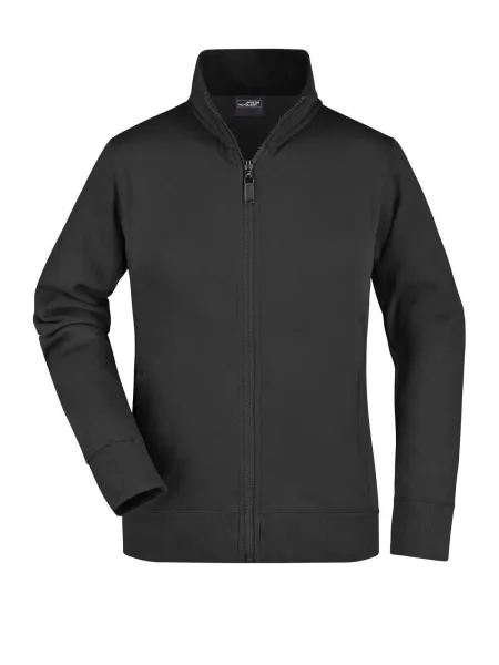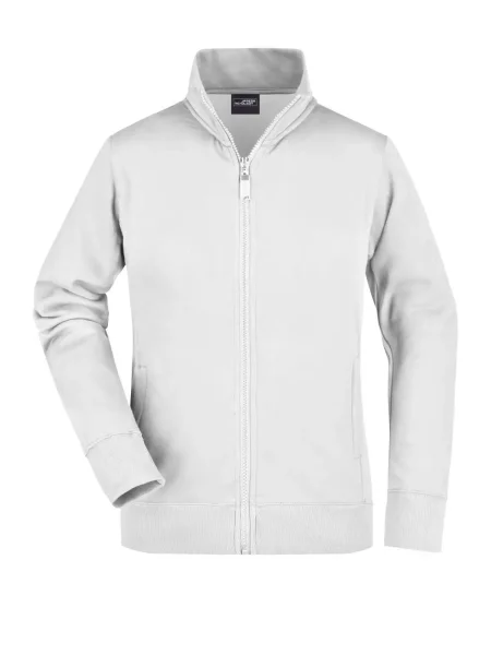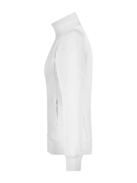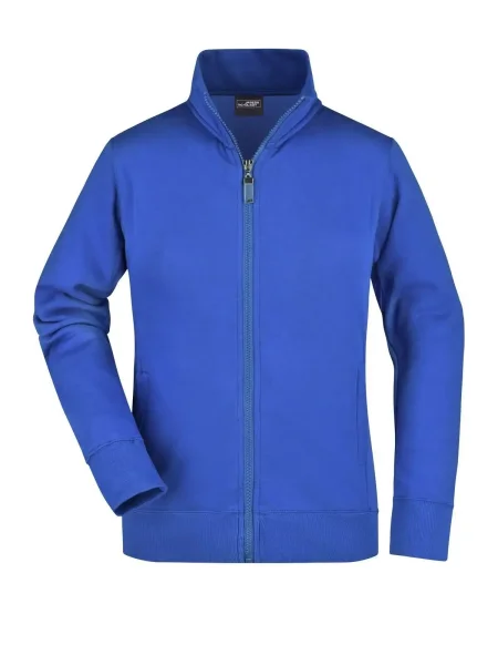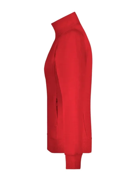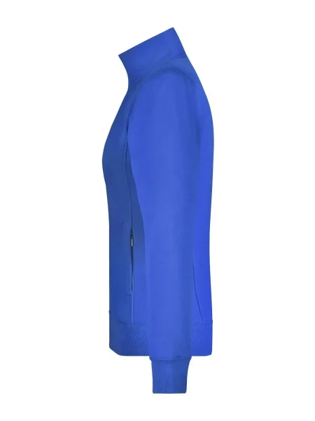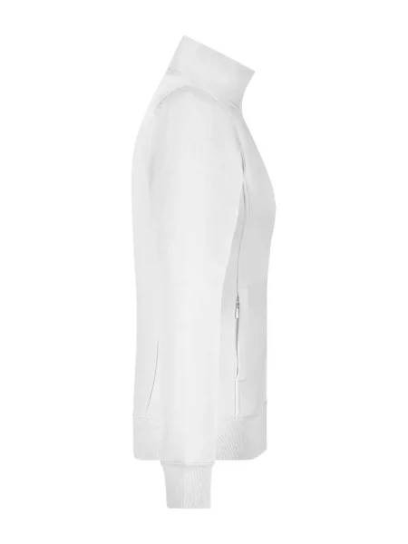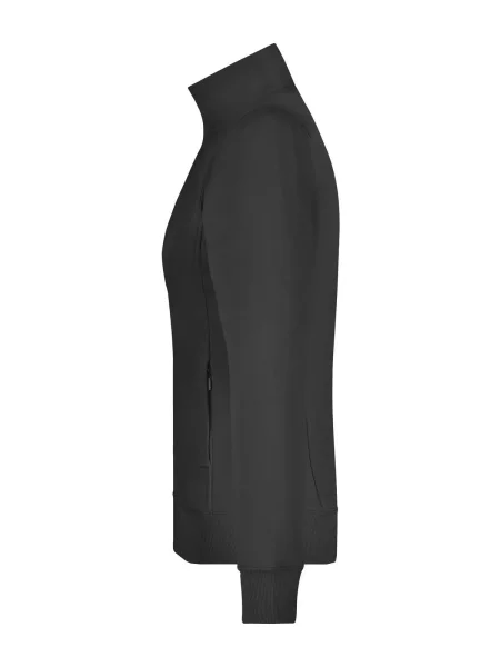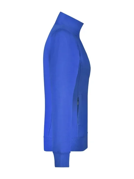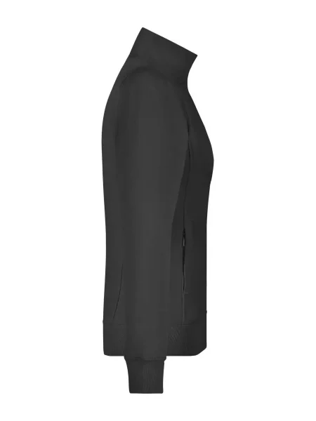 Felpa Ladies' Jacket James & Nicholson. Giacca in resistente felpa, doppie cuciture maggiore resistenza, tasche laterali con cerniera, girovita in elastan, necktape a spina di pesce. Taglio femminile. Tesuto felpa a tre fili, interno felpato, lavabile a 60° C, slimfit, colletto alla coreana.