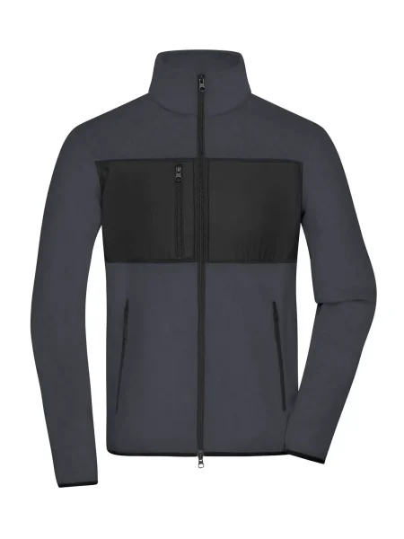 Felpe personalizzate in poliestere pile morbido e riciclato di facile manutenzione. L'inserto è in tessuto con taschino sul petto. Questo modello professionale prevede due tasche laterali e un taschino sul petto con cerniera, due tasche interne, zip frontale a doppio cursore, collo alto e zip YKK.