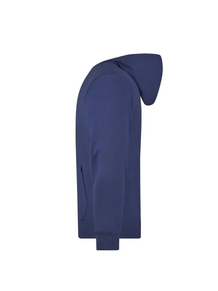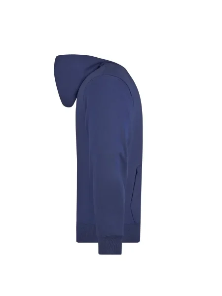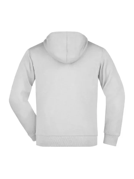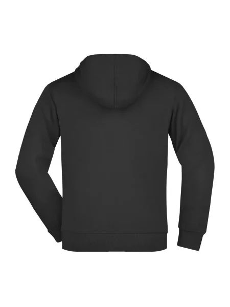 Felpa Men's Hooded Jacket James & Nicholson. Giacca con cappuccio in resistente felpa, cappuccio doppiato con cordino, doppie cuciture maggiore resistenza, tasca a marsupio, girovita in elastan, necktape a spina di pesce, tessuto felpa a tre fili, felpata internamente, lavabile a 60°C.