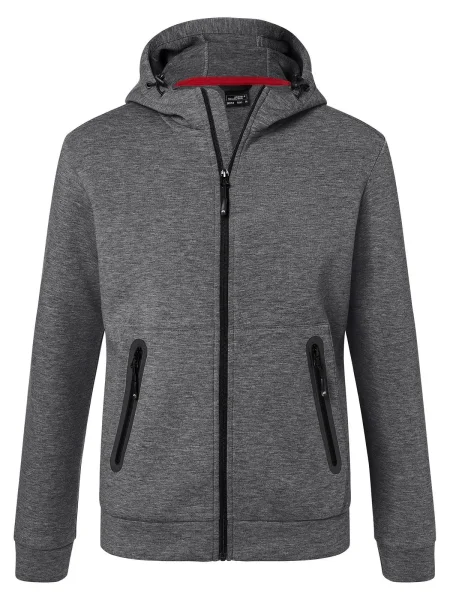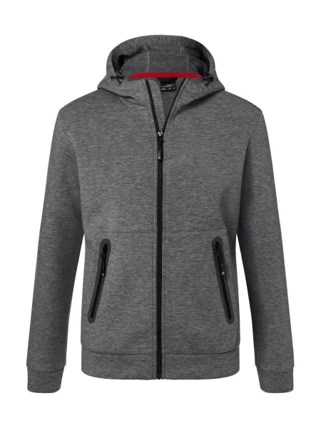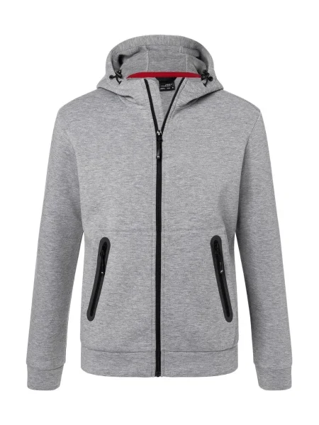 Felpa con zip personalizzata e cappuccio regolabile con cordoncino. Tasca a marsupio con cerniera.