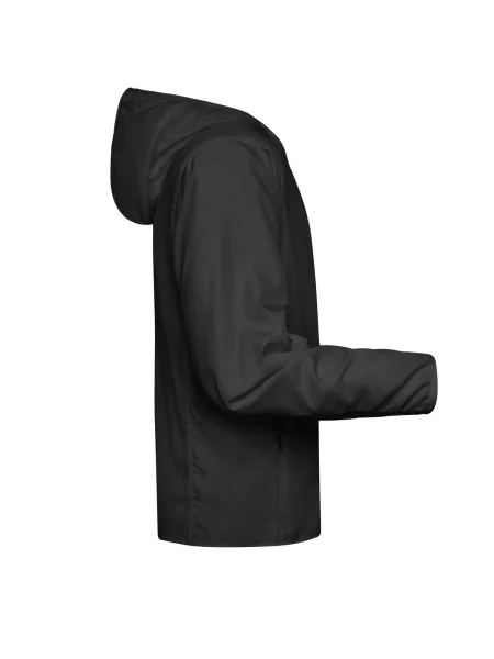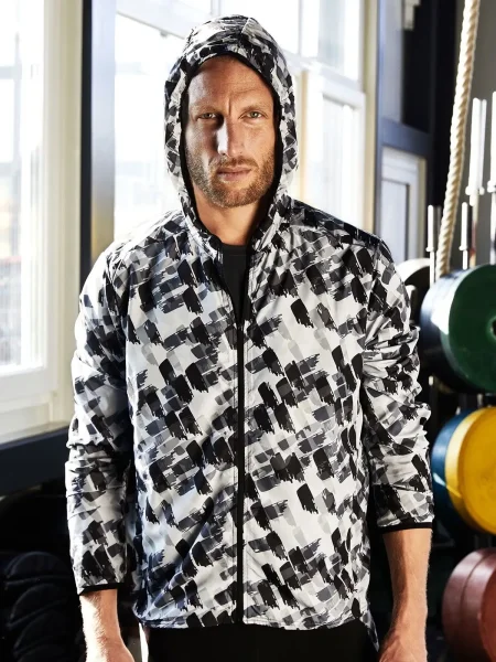 Felpe personalizzate sportive al 100% in poliestere (56% riciclato) easy-care. E' un modello sportivo antivento e idrorepellente, con asciugatura rapida. Ha il cappuccio e la zip YKK con protezione per il mento. Il cappuccio e le maniche sono sgarzati con banda elastica, due tasche laterali con zip, due tasche interne.