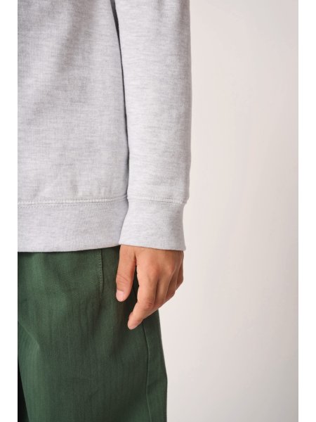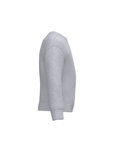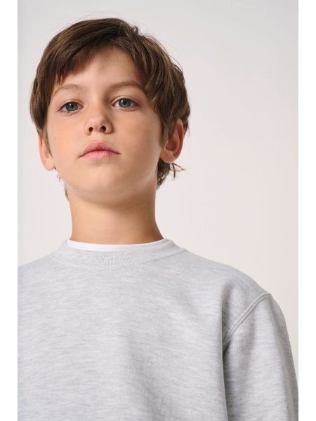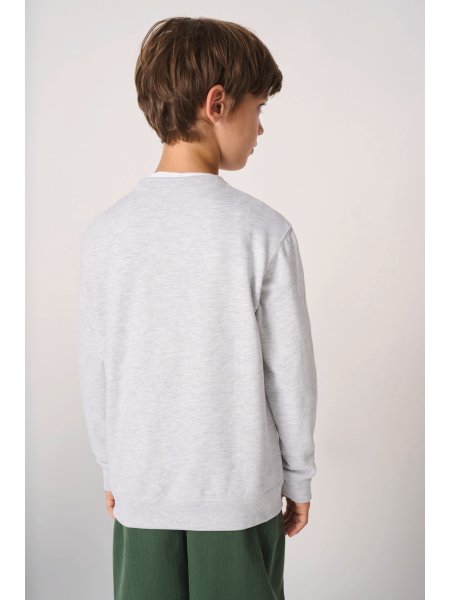 Felpa girocollo da bambino realizzata in un morbido e resistente mix di 50% cotone e 50% poliestere. La struttura in felpa garzata tubolare offre comfort, calore e una vestibilità naturale. Presenta un taglio dritto con collo, fondo maniche e fondo capo in maglia a costine 1x1, rifiniti con doppie impunture per una maggiore durata. Etichetta del marchio staccabile per una personalizzazione semplice e pulita.
