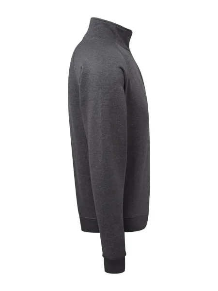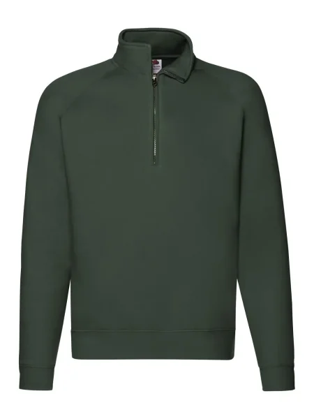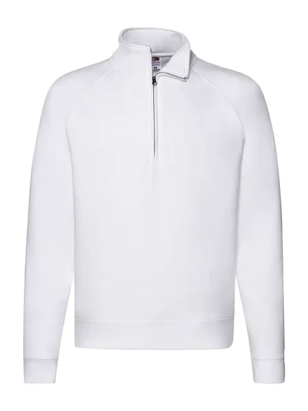 Felpa con maniche raglan, felpata internamente, zip ¼, struttura con cuciture laterali.