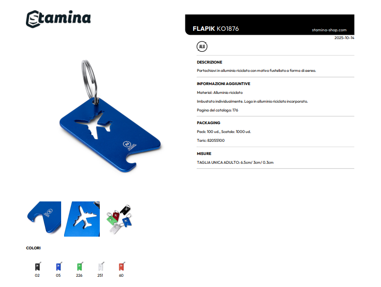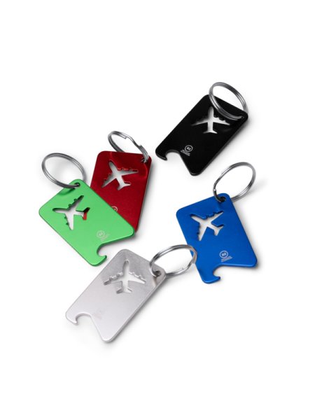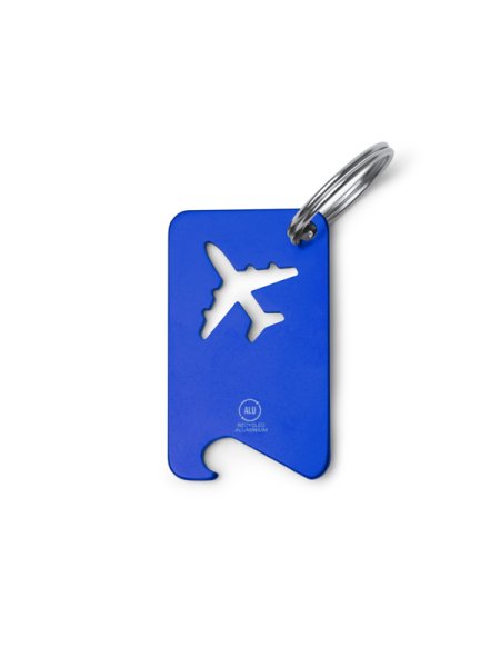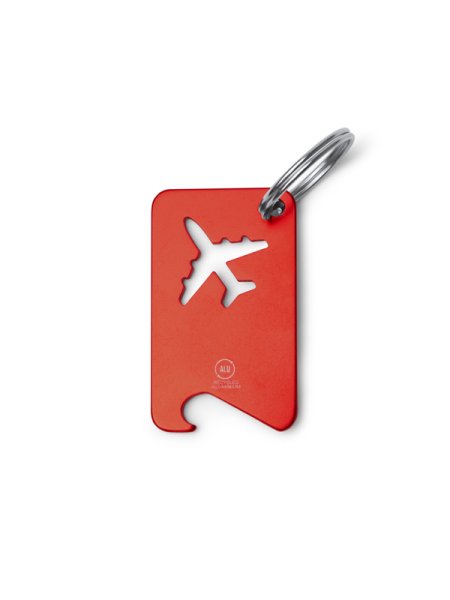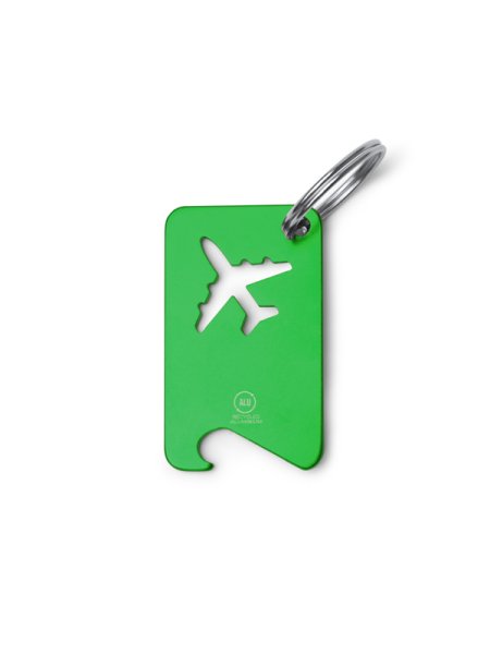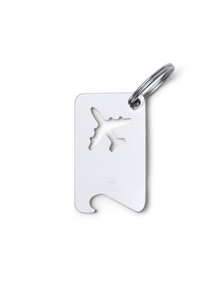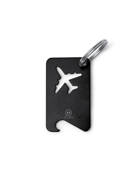 Portachiavi in alluminio riciclato con motivo fustellato a forma di aereo.