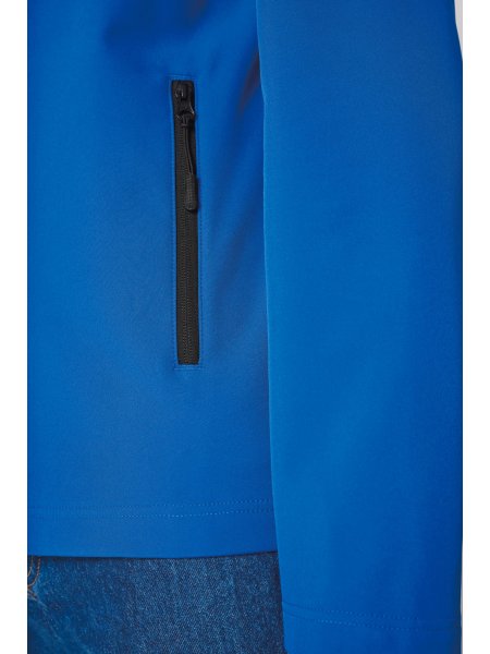La giacca softshell a 2 strati è realizzata in tessuto composto per il 95% da poliestere e 5% da elastan, con trattamento idrorepellente per garantire protezione e comfort. L’interno in micropile nero 100% poliestere assicura morbidezza e calore. Il taglio dritto e il collo alto offrono una vestibilità pratica e contemporanea. Presenta due tasche laterali foderate in polytricot con zip in nylon e tiretti neri, oltre a una chiusura frontale con zip in nylon nera dotata di protezione per il mento. Gli inserti su spalle e schiena con impunture aggiungono un tocco tecnico al design. Il nastro di rinforzo interno al collo è nero, mentre gli orli delle maniche e del fondo capo sono rifiniti con cuciture a doppio ago. L’etichetta del marchio è staccabile per una personalizzazione più semplice.