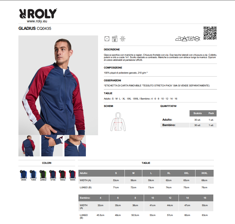 Giacca sportiva adulto e bambino personalizzabile Roly Gladius