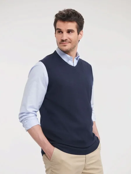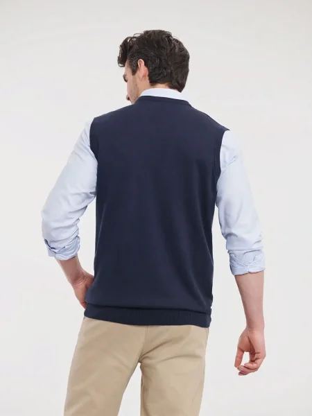 Gilet scollo a v uomo costina 1x1. Polsini e girovita con elastane, lavabile a 40°c. Cuciture laterali.