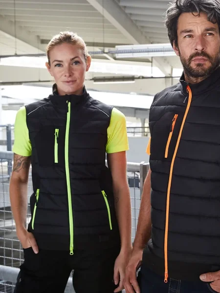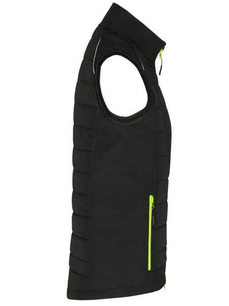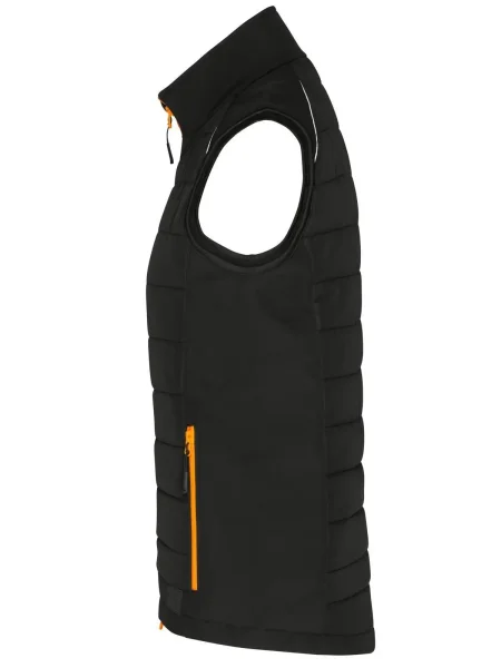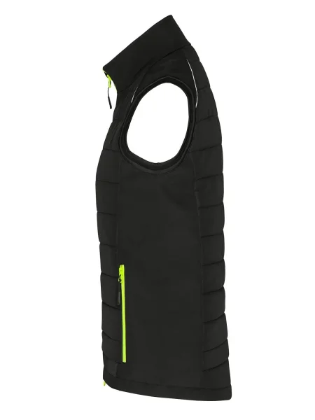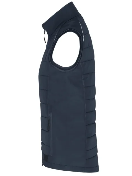 Gilet softshell a due strati trapuntato davanti e dietro, idrorepellente e antimacchia grazie al BIONIC FINISH ECO, imbottitura Warming DuPont Sorona, colletto alto, tasche laterali e tasca sul petto con zip, tasca interna, dettagli riflettenti (no DPI), zip: YKK, leggermente sciancrata.