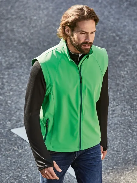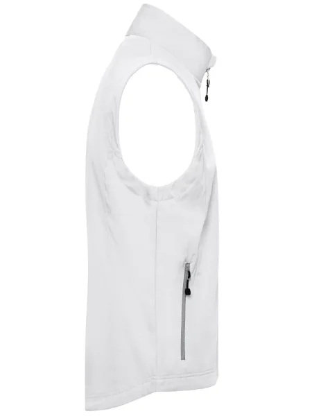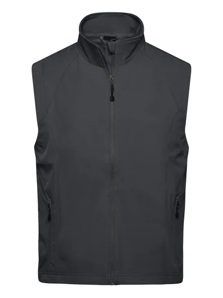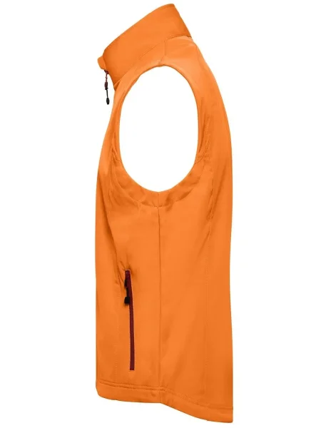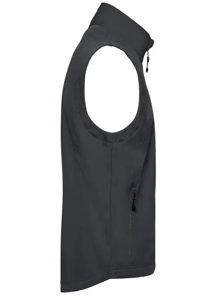 Gilè in softshell, tessuto funzionale a 3 strati con membrana TPU, Idrorepellente e antivento (2.000 mm colonna d'acqua), traspirante (2.000 g/m²/24h). Le cuciture non sono chiuse, Tessuto stretch morbido sportivo, 2 tasche laterali con cerniera, 2 tasche interne. Cordino elastico con stopper in vita. Colonna d'acqua 2.000 mm, antivento e idrofugo