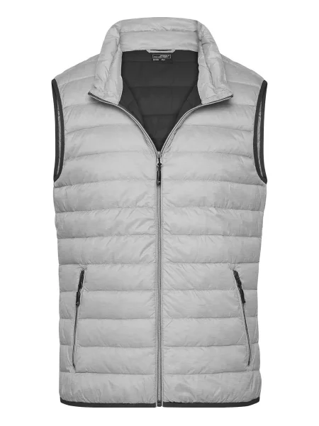 Gilet smanicato uomo leggero in poliestere antivento e idrorepellente. Ha rivestimento interno e cerniera di colore contrastante e due tasche con cerniera.