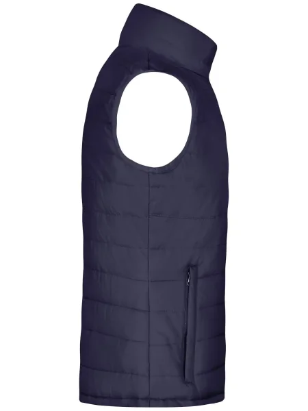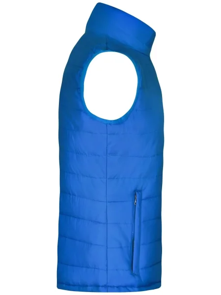 Smanicato uomo personalizzato imbottito in poliamide, antivento e idrorepellnte con colletto sostenuto. Cerniera nascosta e protezione per il mento, 2 tasche laterali con cerniera. Polsini delle maniche elasticizzati, cerniera decorativa sul retro.