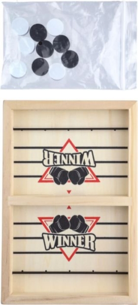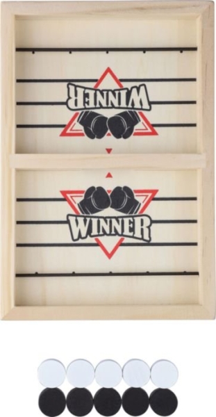 Gioco di espulsione in legno, composto da 10 pedine degli scacchi (5 bianche e 5 nere) e un manuale per una facile configurazione e gioco. Un gioco di abilità rapido, ideale per adulti, con un totale di 11 pezzi.Confezionato singolarmente in una scatola di cartone avana decorata con un’illustrazione sul davanti.