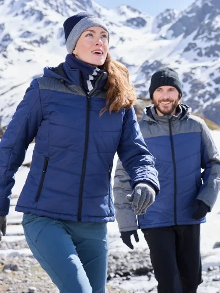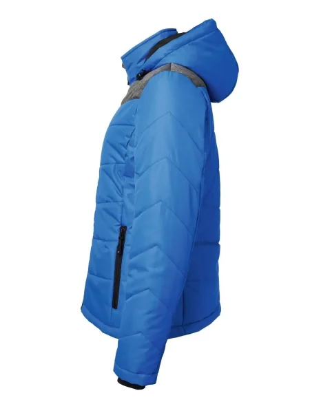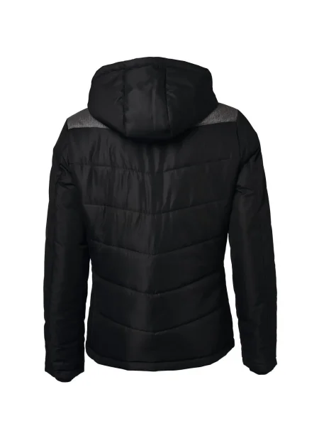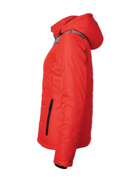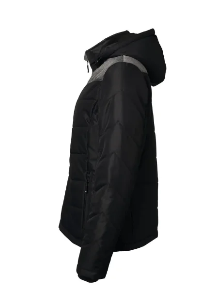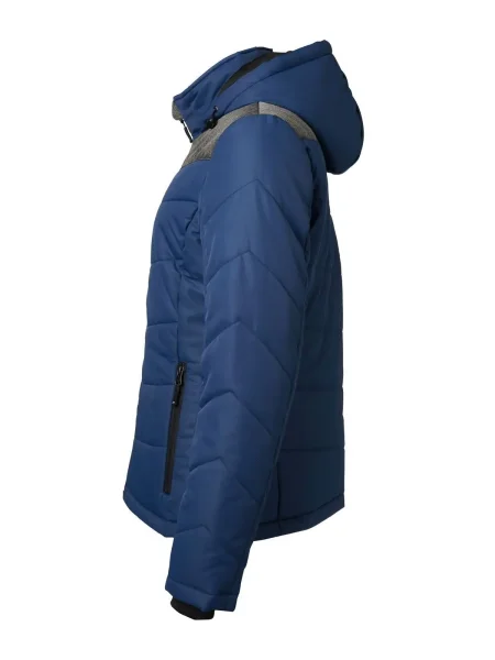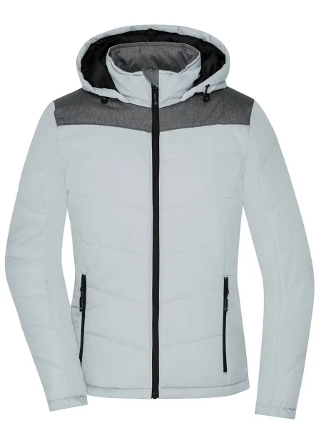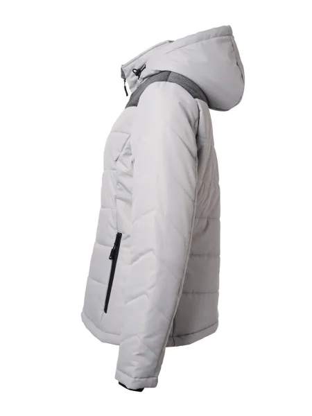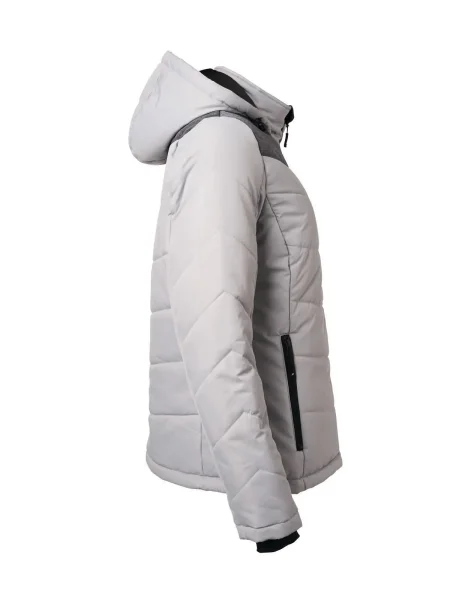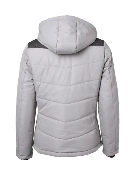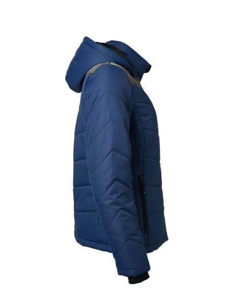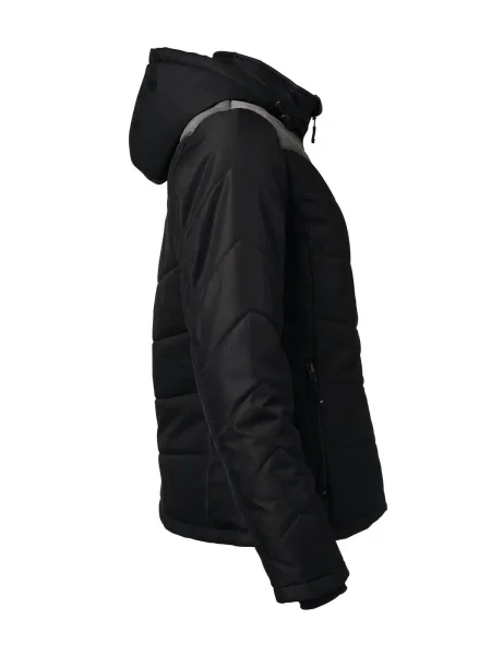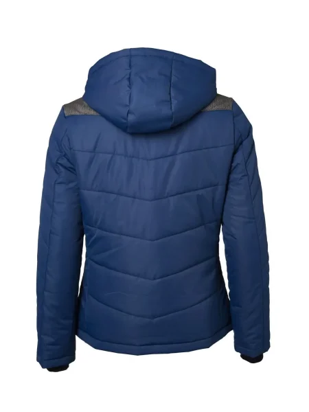 Giacca invernale donna, imbottita, antivento e idrorepellente (colonna d'acqua 1,500 mm), cuciture nei pannelli, con colletto sostenuto e con cappuccio aggiustabile, polsini delle maniche elasticizzati, tasche laterali chiuse con cerniera, 1 tasca interna, cerniera decorativa sul retro, avvitato