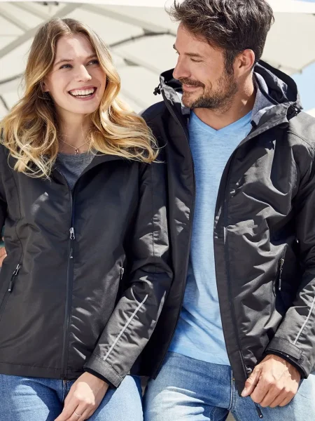 Giubbino 3 in 1, tessuto resistente al vento e all'acqua (colonna d'acqua di 5.000 mm), traspirante e permeabile al vapore (5.000 g/m²/24 h), cuciture nastrate, idrorepellente e antimacchia grazie al BIONIC-FINISH®ECO. Cappuccio regolabile, cerniera frontale nascosta con protezione per il mento, 2 tasche laterali con zip, 1 tasca interna. Tutte le cerniere sono impermeabili. Dettagli riflettenti sulla manica e sul retro. Parte interna in pile con bordino in contrasto, 2 tasche laterali, collo alto.