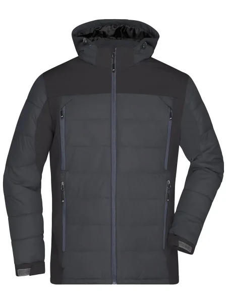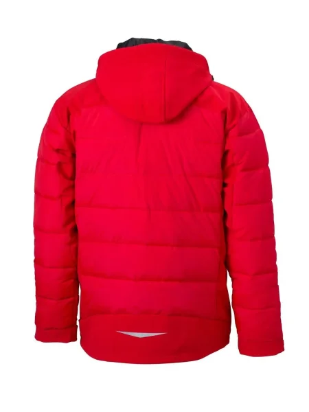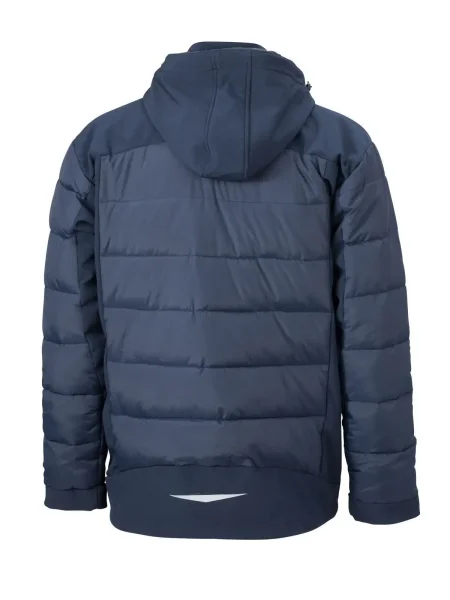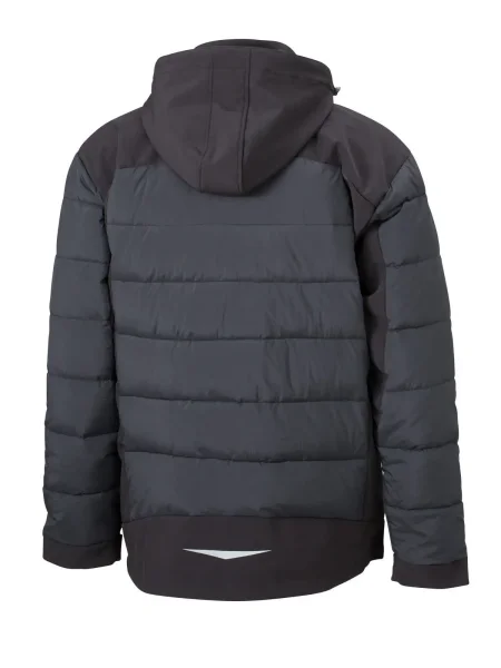 Giubbino termico in materiale misto tecnico. Elementi cuciti sul retro imbottiti, inserti softshell elastici, antivento e acqua repellenti. Cappuccio softshell staccabile e regolabile, protezione dal vento rinforzata dalla protezione mento, 4 tasche frontali con contrasto di cerniera. Tasca interna con cerniera, tasca in maglia interna, stampa riflettente sul retro. Velcro, pence sulla schiena, trapuntato, Thermo, imbottito, antivento e idrofugo