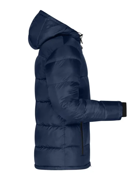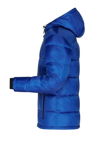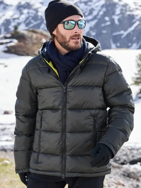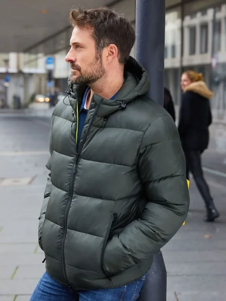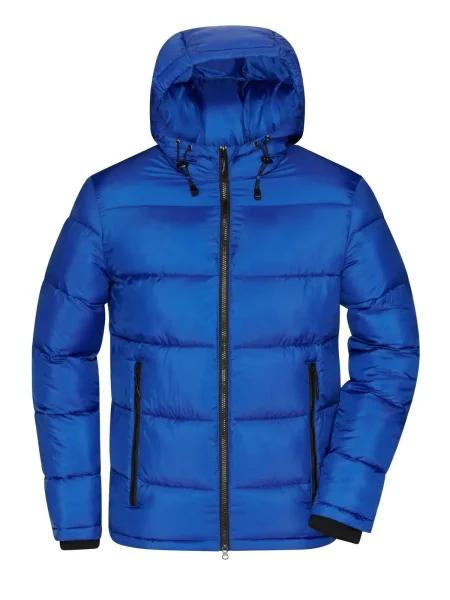 Giubbini uomo invernali personalizzabili trapuntati con cappuccio. Dotati di un'imbottitura DuPont Sorona, idrorepellente e antimacchia grazie al BIONIC FINISH®ECO. Hanno rivestimento a contrasto, polsini elastici, 2 tasche laterali e una interna, cordino regolatore sull'orlo, zip: YKK.