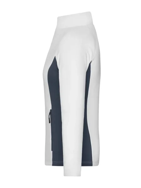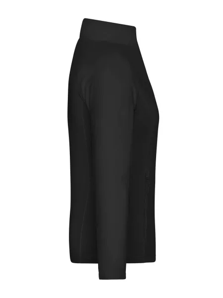 Giacca da donna in pile elasticizzato, in materiale caldo e traspirante, lato esterno liscio, interno felpato, zip lunga con protezione per il mento, collo alto, maniche raglan, 2 tasche laterali con zip, 2 tasche interne, zip: YKK
