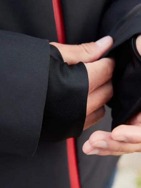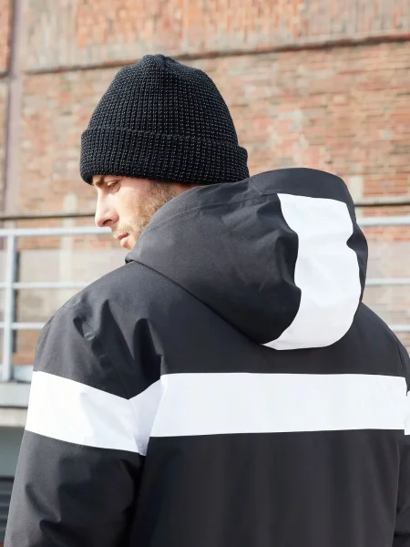 Giacca impermeabile con imbottitura DuPont? Sorona®, tessuto esterno antivento e antipioggia (10,000 mm colonna d'acqua), traspirante e permeabile al vapore (5,000 g/m²/24 h). Cuciture nastrate, cappuccio imbottito, inserti in colore contrastante sulle maniche davanti e dietro. Zip bidirezionale waterproof, pattina intera con protezione per il mento, 4 tasche frontali con zip waterproof. Tasca interna con zip, tasca a rete interna, piccola tasca con zip sulla manica sinistra, orlo regolabile, maniche con orlo elastico e buco per il pollice, zip decorativa sul retro.