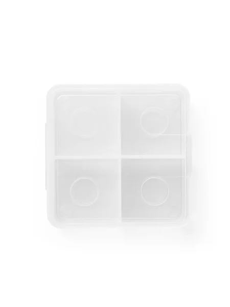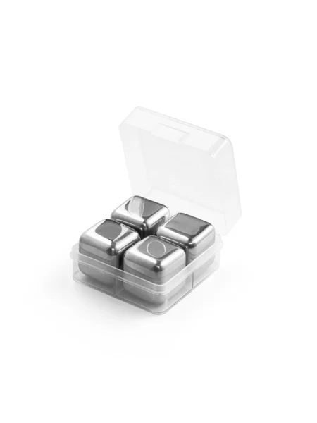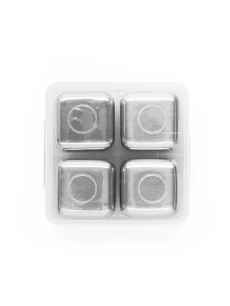 Set di quattro cubetti riutilizzabili in acciaio inox. Fornito in scatola di PP con carta protettiva.