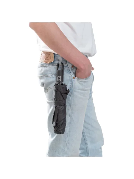 Ombrello apertura e chiusura automatica pieghevole da 23 pollici in poliestere riciclato 100% rPET pongee 190T, progettato per un utilizzo pratico e veloce. La struttura antivento con stecche in fibra di vetro, fusto in metallo e manico in ABS riciclato al 35% garantisce solidità e comfort. Ripiegabile in 3 sezioni, è fornito in borsa. Dimensioni ombrello: ø1050 x 330 mm, custodia: ø50 x 250 mm.