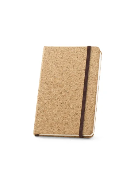 Block notes tascabile in sughero con 160 pagine lisce (70 g/m²) in materiale certificato FSC™ e altri materiali controllati, nastro separatore e chiusura elastica. Poiché il prodotto è realizzato con materiali naturali, il colore del prodotto e il risultato della stampa possono variare da un prodotto all'altro. 90 x 142 mm