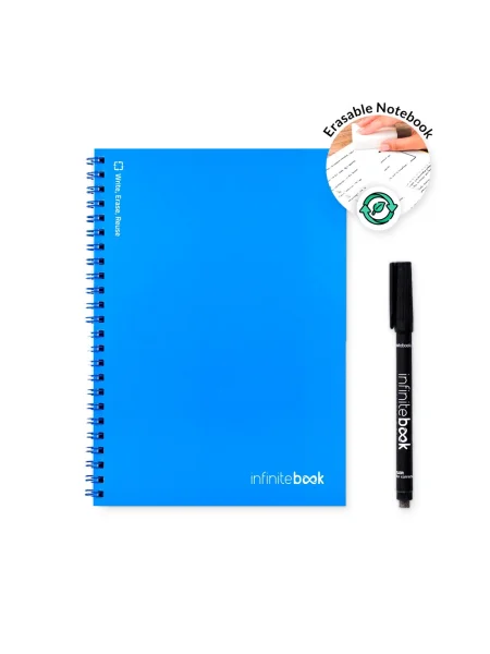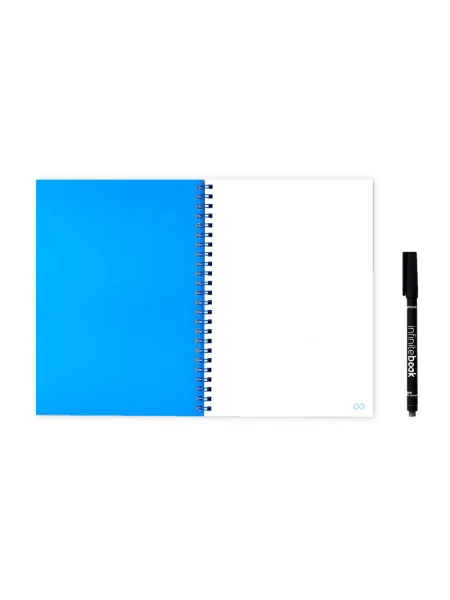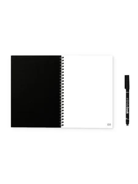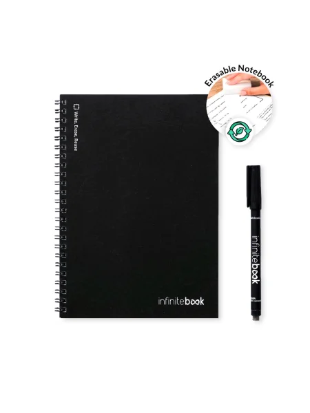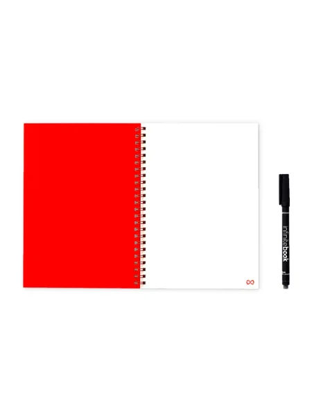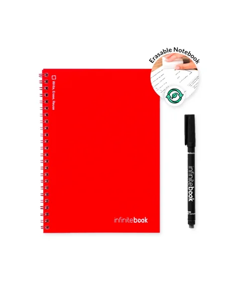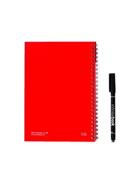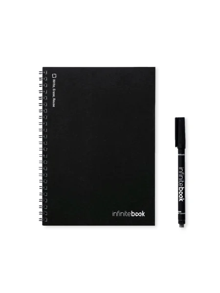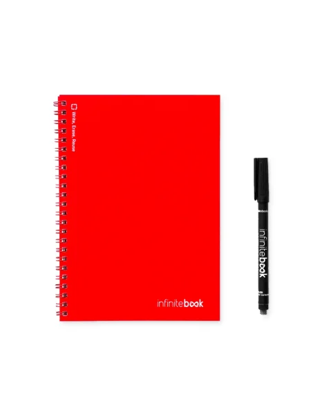 Block notes A5 - "Infinitebook" - con copertina flessibile e spirale colorata. Il quaderno ha 15 pagine stile lavagna bianca e un pennarello nero. Consente inoltre di cancellare facilmente quello che si scrivere ed è una soluzione pratica per ridurre al minimo il consumo di carta. Le note possono essere scannerizzate. Prodotto in Europa. Fornito in una busta di carta kraft con un adesivo. 148 x 210 mm