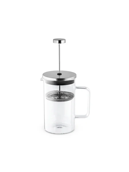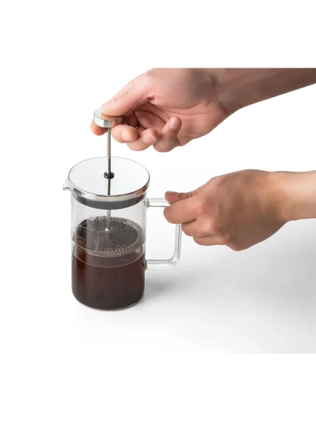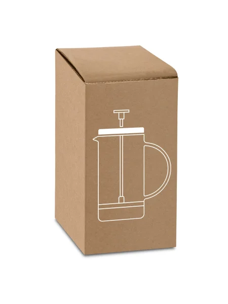 Bicchiere in vetro borosilicato e caffettiera in acciaio inox. Capacità fino a 600 mL. Fornito in confezione regalo di carta kraft.