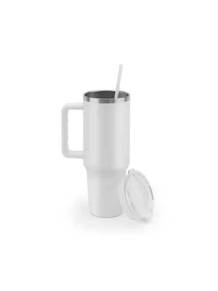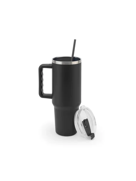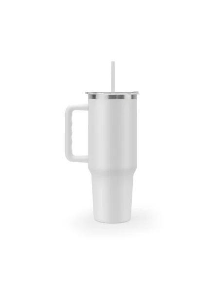 Bicchiere da viaggio di grande capacità, perfetto per restare idratati tutto il giorno senza continue ricariche. Realizzato in acciaio inox (91% rSS), con doppia parete isolata sottovuoto e finitura opaca. Può essere utilizzato con cannuccia o direttamente tramite l’apertura richiudibile. Il manico facilita il trasporto al lavoro o all’aperto. Capacità fino a 1300 mL. Fornito in confezione regalo in carta kraft. ø143 x 257 mm (senza cannuccia) | Cannuccia: 305 mm