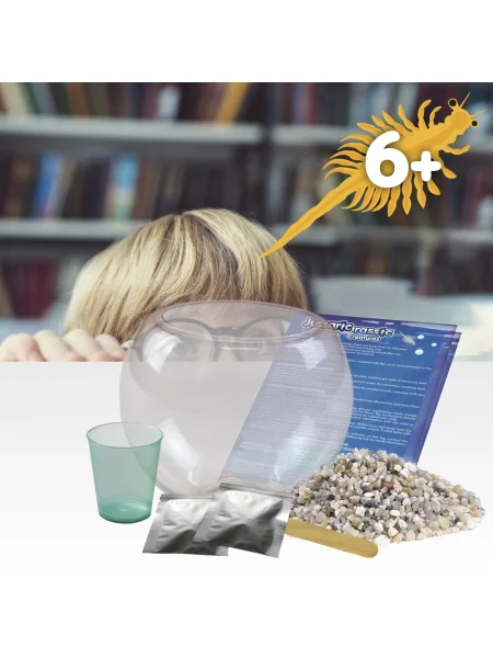 Gioco didattico per i bambini per imparare a prendersi cura degli animali acquatici del Giurassico. Kit per la costruzione di un ecosistema acquatico con uova di gamberetti di salamoia (parenti stretti dei triops). Seguite il ciclo di vita degli animali marini preistorici e imparate a distinguere tra maschi e femmine e altre curiosità. Età consigliata: +6 anni. Sacchetto regalo in carta kraft (115 g/m²), realizzato con materiale certificato FSC™ e altri materiali controllati