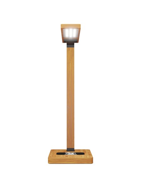 Lampada da scrivania in legno di betulla con logo luminoso e base di ricarica a induzione da 10 W (46,5 x 13,4 x 4,5 cm). La tonalità di colore e la luminosità della luce possono essere regolate tramite i pulsanti a sfioramento che si trovano sulla base. La tecnologia di ricarica a induzione consente di caricare qualsiasi dispositivo compatibile (smartphone, mouse, cuffie, ecc.) direttamente sulla base della lampada, nel punto in cui si trova il logo luminoso. La base dispone anche di una porta di ricarica USB per i dispositivi che non supportano la ricarica wireless. Ciò significa che è possibile caricare 2 dispositivi contemporaneamente. Fornita con un cavo di ricarica realizzato in PET riciclato in una confezione regalo di colore nero (47 x 14 x 6 cm) con chiusura magnetica. Garanzia di 3 anni inclusa.
