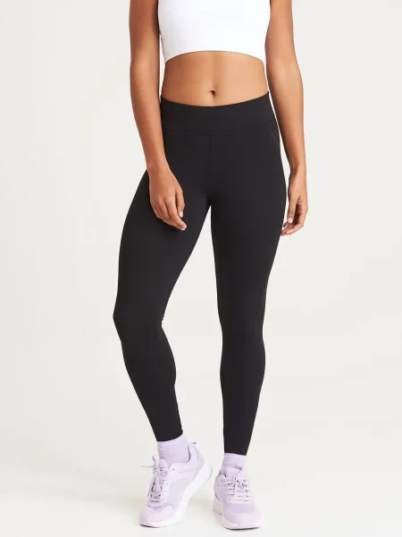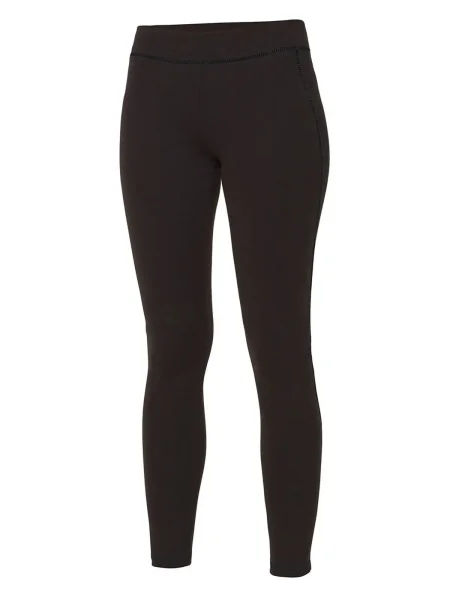 Leggings sport donna con vita elasticizzata, cuciture piatte a contrasto in 3 colori, piccola tasca portachiavi, etichetta strappabile.