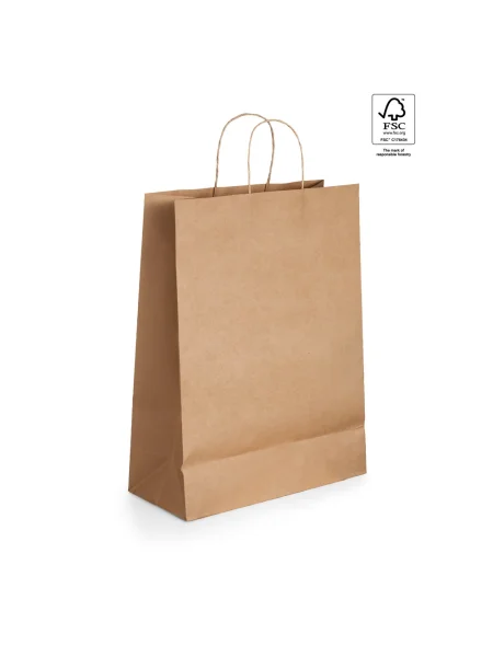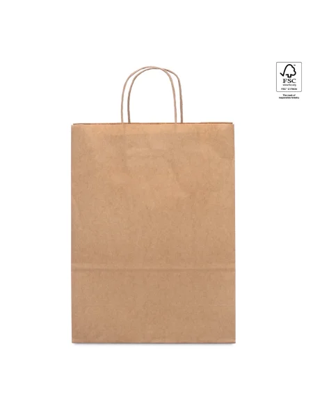 Sacchetto in carta kraft (115 g/m²) con maniglia ritorta. Prodotto in Europa. Questo prodotto è realizzato con materiale certificato FSC™ e altri materiali controllati. 230 x 180 x 80 mm