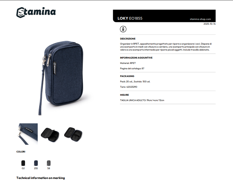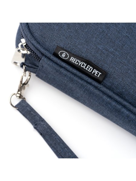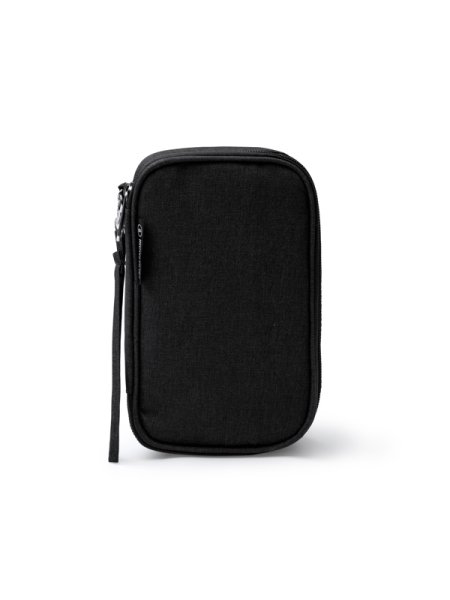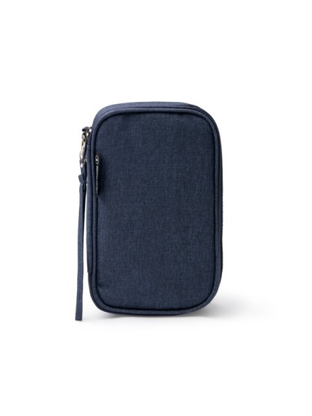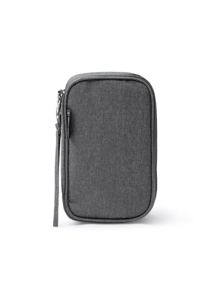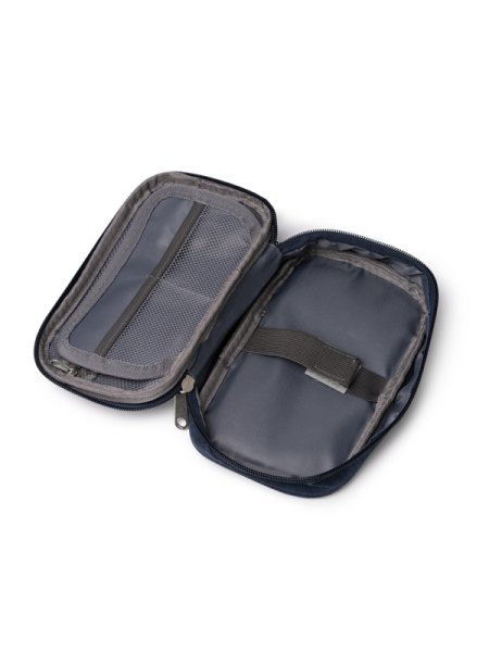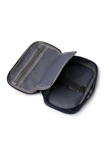 Organizer in RPET, appositamente progettato per riporre e organizzare i cavi. Dispone di uno scomparto in mesh con chiusura a cerniera, uno scomparto principale con chiusura in velcro e uno scomparto intermedio per riporre piccoli oggetti. Include tracolla abbinata.