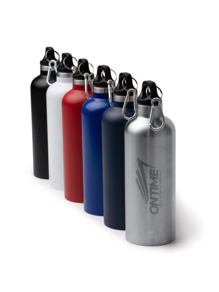 Borraccia acciaio inox a doppia parete da 500 ml, realizzata in acciaio inox 304 riciclato con tappo antigoccia. Mantiene la temperatura delle bevande ed è dotata di pratico moschettone per il trasporto.