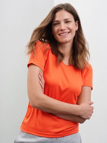 T-shirt per il tempo libero e lo sport Fine single jersey, Forma diritta, necktape, Cuciture a doppio ago sulle spalle, collo e maniche, Traspirante, regola l'umidità, Ad asciugatura rapida. Tessuto esterno (150 g/m²): 100% poliestere Funzione, Manica corta, Collo rotondo, Taglio sciancrato.