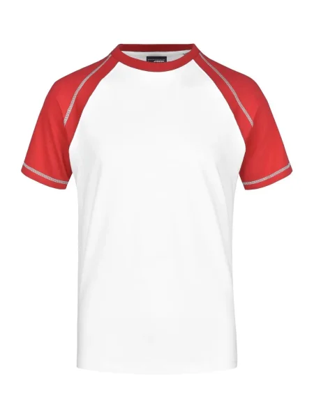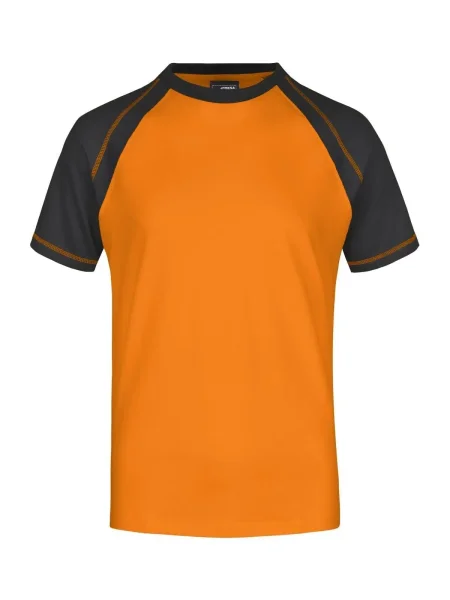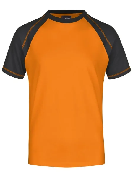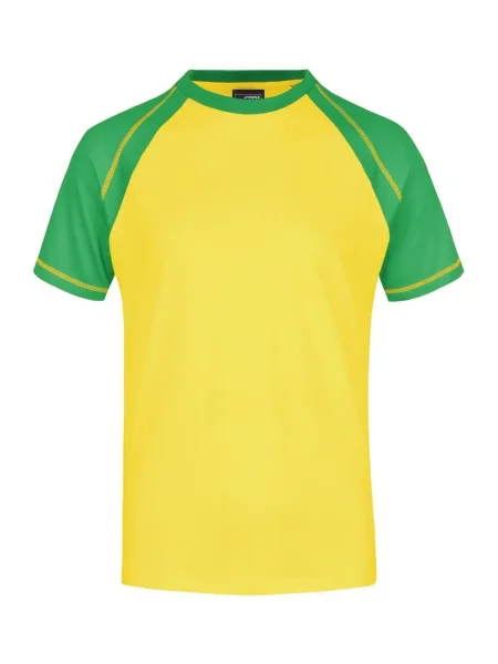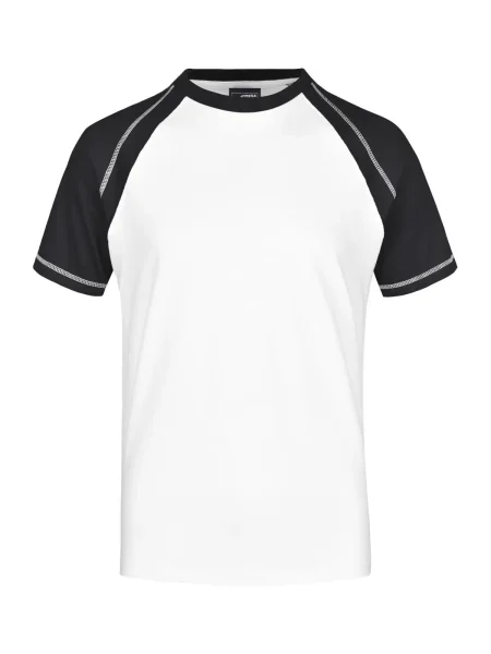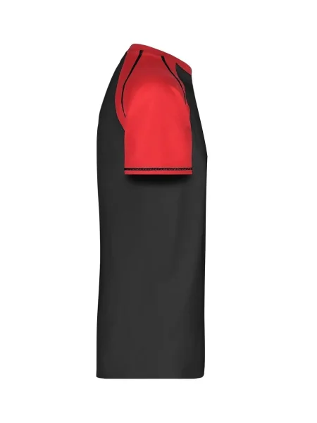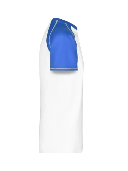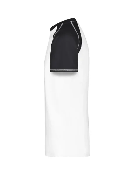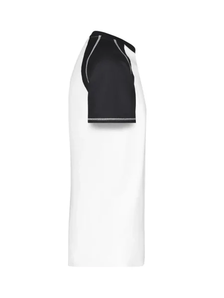 T-Shirt in design sportivo bicolore, Single-Jersey di alta qualità, Maniche raglan e girocollo con colori a contrasto, doppie cuciture e cuciture flatlock sulle maniche, Necktape.JN011: Taglio femminile. Manica corta,policromo,Raglan. Collo rotondo.