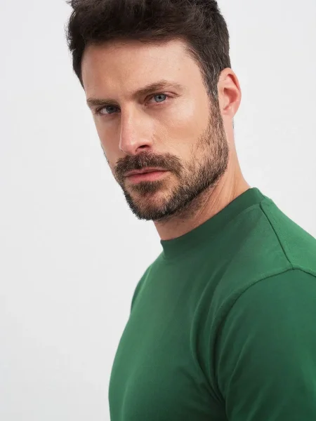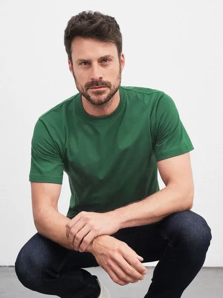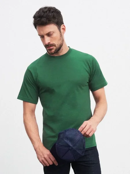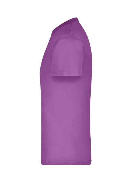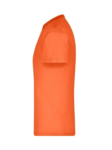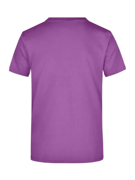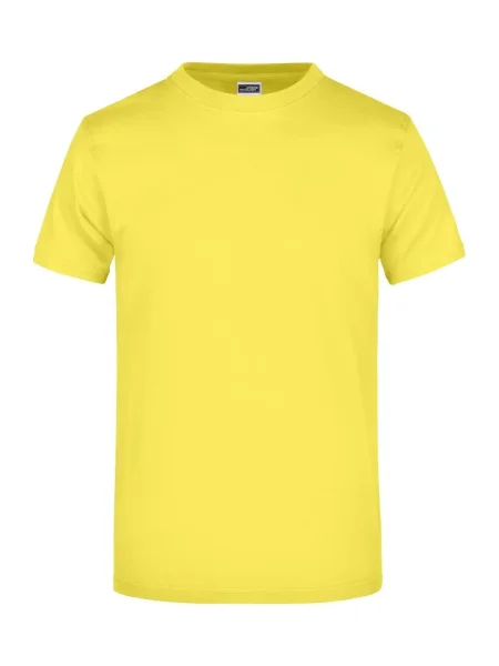Comoda T-shirt in resistente single jersey, Collo rotondo con elastan, Senza cuciture laterali, necktape. Cuciture doppie sulle spalle, sul collo e sul giro manica. Tessuto esterno (180 g/m²): 100% cotone. Manica corta senza cuciture laterali.