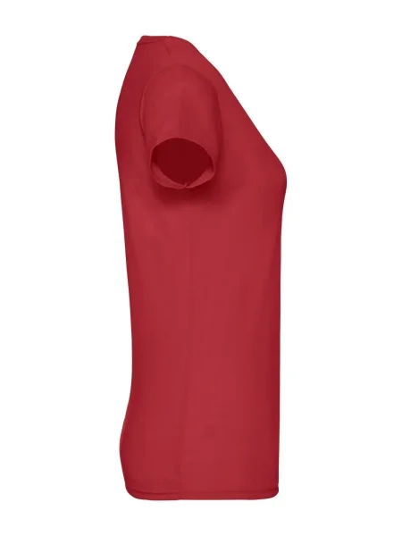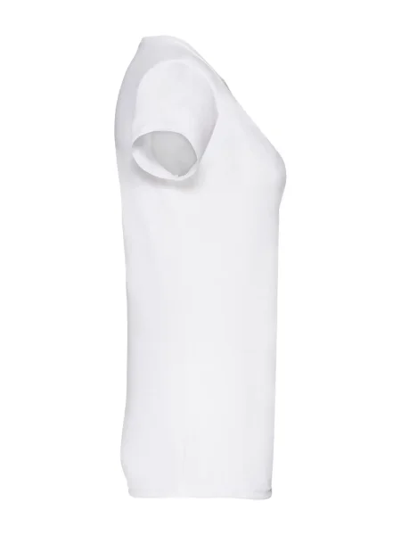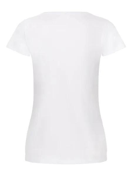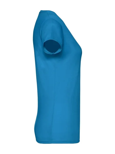 T-shirt manica corta girocollo, struttura con cuciture laterali sagomate per un taglio piu' femminile, tessitura compatta per un processo di stampa piu' pulito.