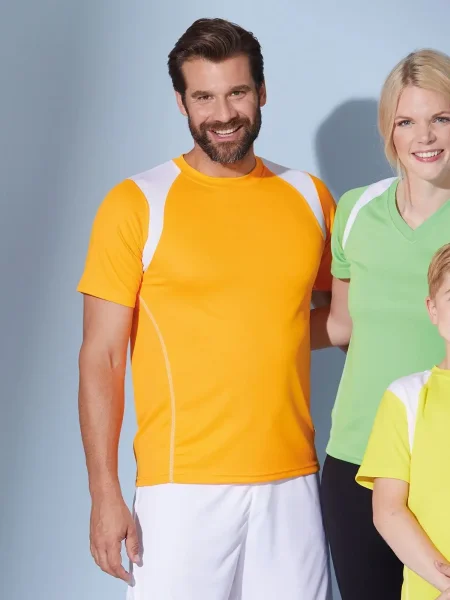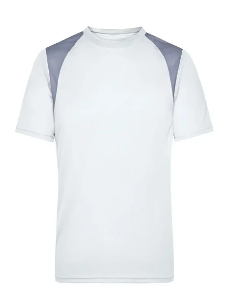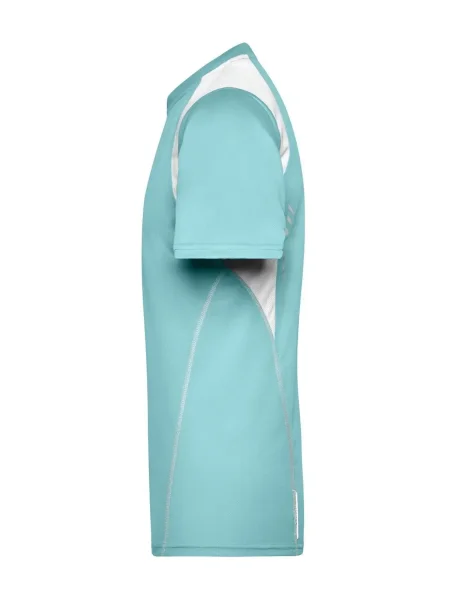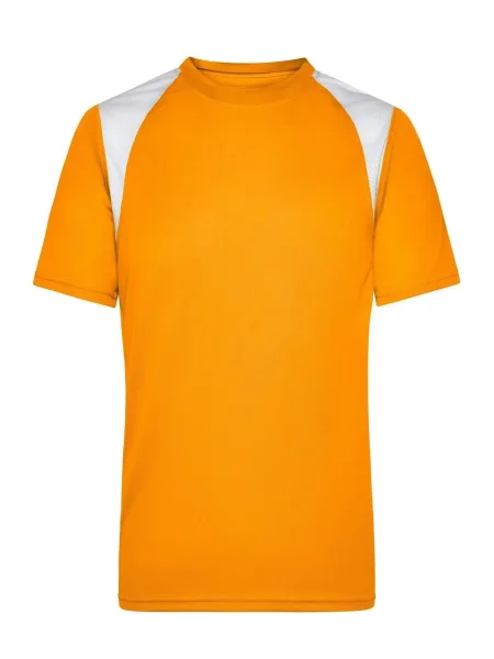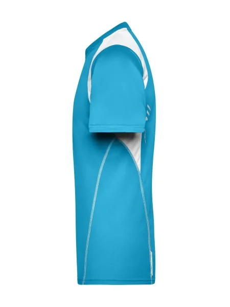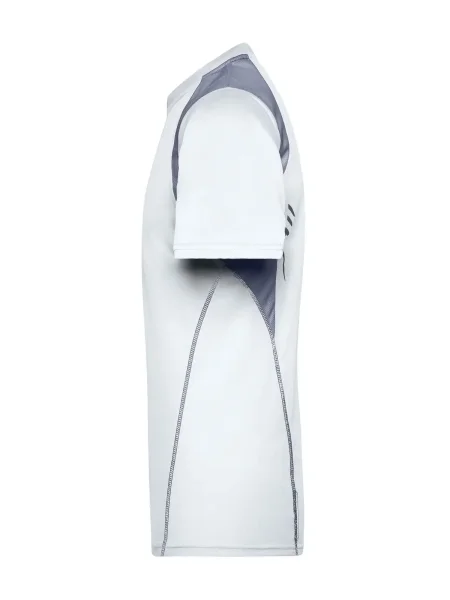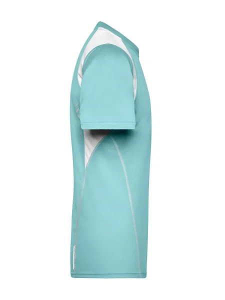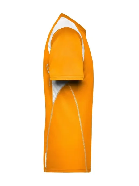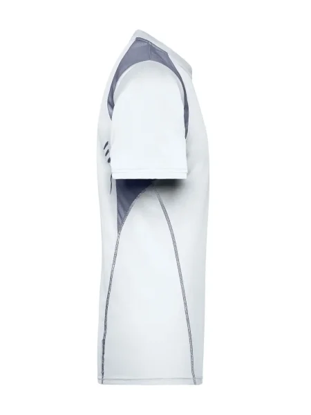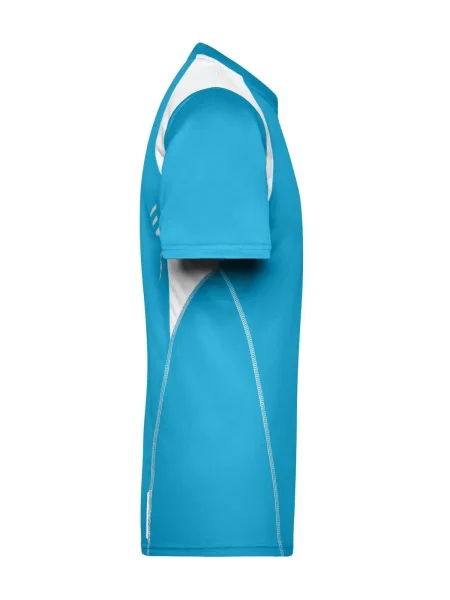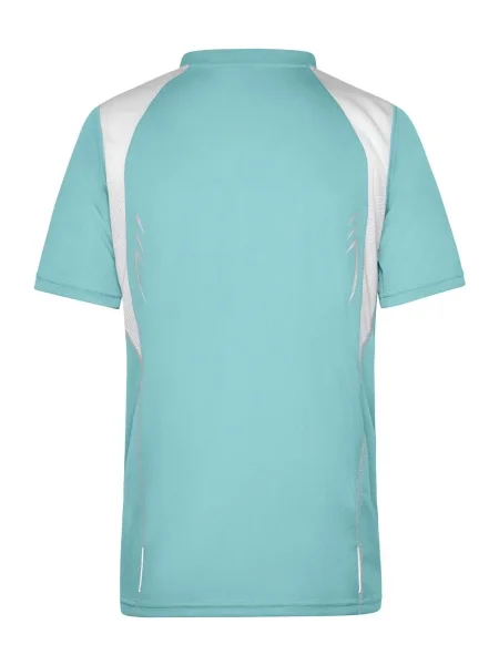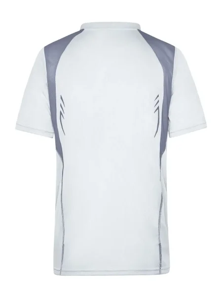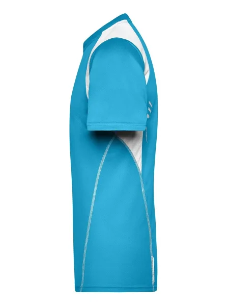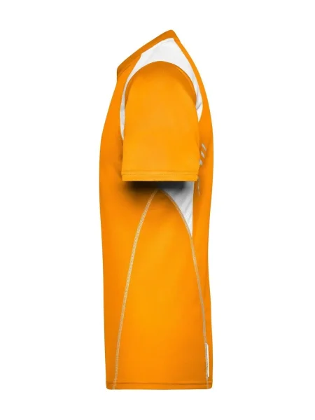 T shirt running da uomo, tessuto leggero e comodo, regola l'umidità, ad asciugatura rapida. Cuciture piatte, bordini e transfer riflettenti, struttura con cuciture laterali, spalle con dettagli in contrasto.