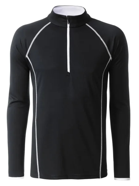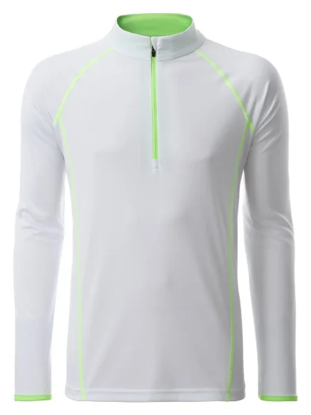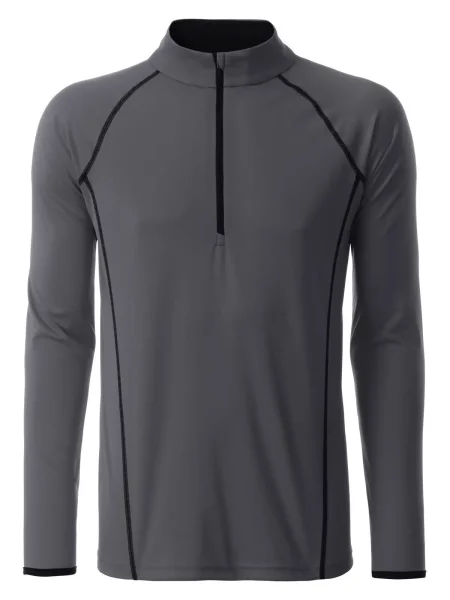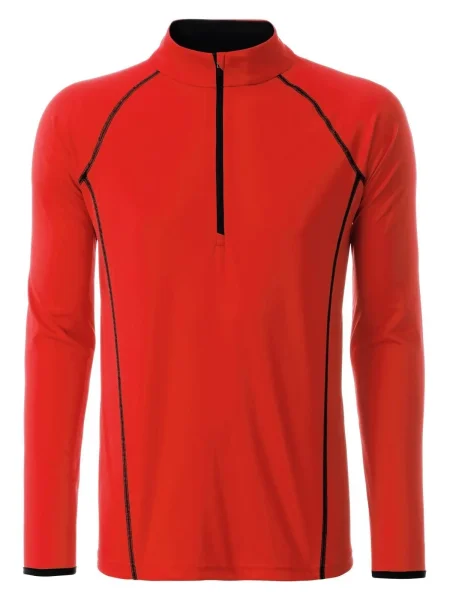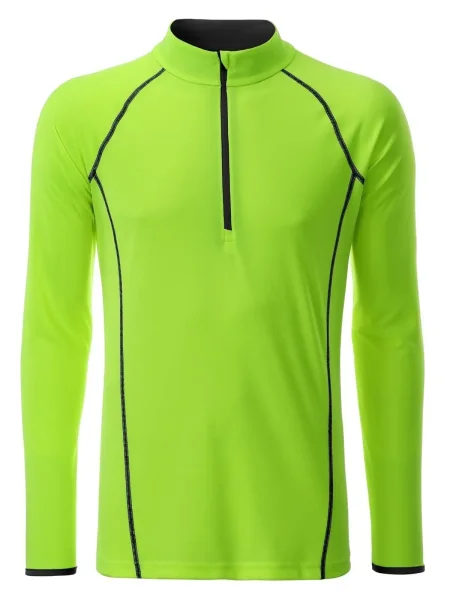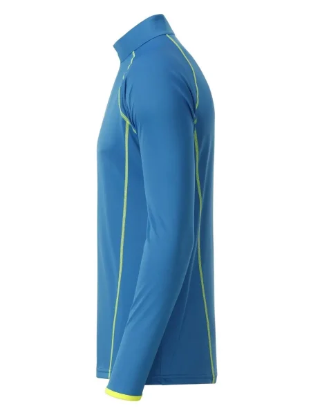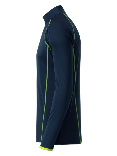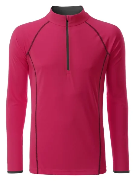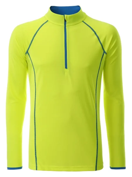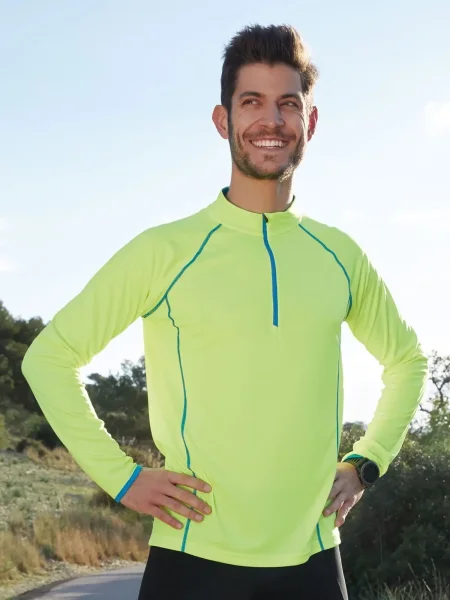 T shirt manica lunga per fitness e sport Transpirante e con regolazione umidità. Asciugatura rapida, leggera e confortevole. Maniche raglan, collo alto. Cuciture in contrasto sul davanti e sul retro. Zip con protezione per il mento. Tessuto esterno (130 g/m²): 100% poliestere, Manica lunga, policromo