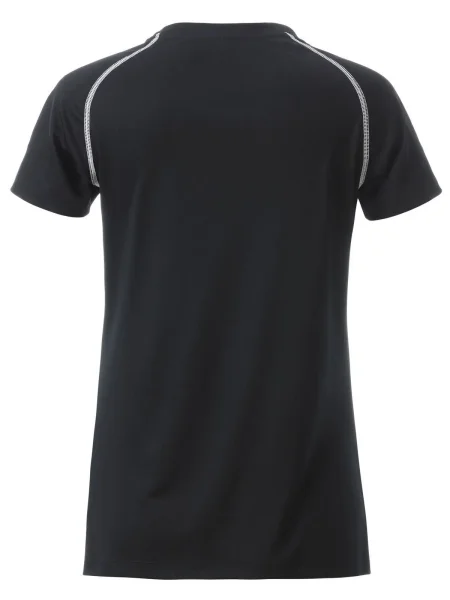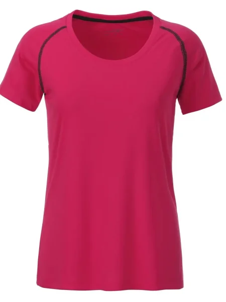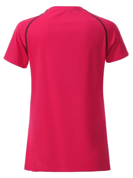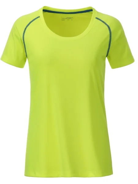 T shirt da donna per fitness e sport Transpirante e con regolazione umidità, Asciugatura rapida, leggera e confortevole, Maniche raglan, collo rotondo, Contrasto cuciture piatte sul davanti e sul retro, leggermente avvitata Tessuto esterno (130 g/m²): 100% poliestere, Manica corta, Donna, policromo.