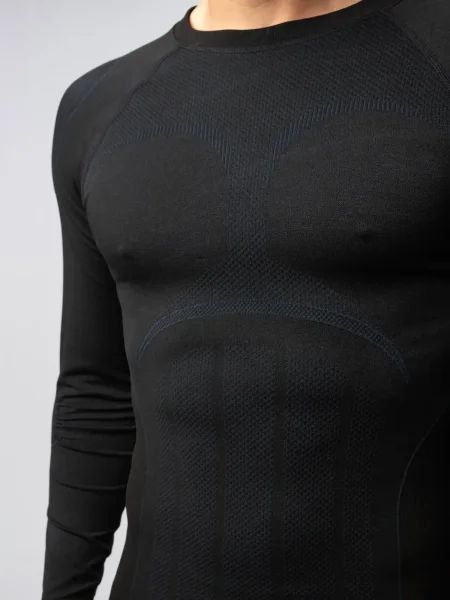 Maglia termica a manica lunga raglan in tessuto morbido ed elasticizzato. Composizione: 67% nylon, 23% polipropilene, 10% elastane. Motivi in rilievo e rinforzi su fronte, schiena e maniche. Collo in costina elasticizzata. Fondo e polsini nello stesso tessuto. Struttura tubolare senza cuciture per evitare irritazioni. Traspirante, termoregolatrice e non rilevabile dai metal detector. Etichetta removibile. Massimo comfort e libertà di movimento anche in condizioni estreme.