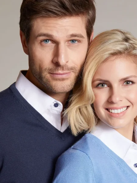 Maglione uomo con tessuto in maglia leggera, scollo a V. Lavabile in lavatrice. Cuciture laterali.