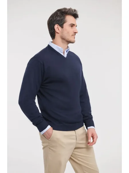 Pullover da uomo con elegante scollo a V, realizzato con lavorazione a costina 1x1 per una vestibilità confortevole e duratura. Polsini e girovita con aggiunta di elastane per mantenere la forma nel tempo e garantire una perfetta aderenza. Design classico con maniche a giro e cuciture laterali che assicurano una linea pulita e una migliore vestibilità. Facile da mantenere, è lavabile in lavatrice a 40°C.