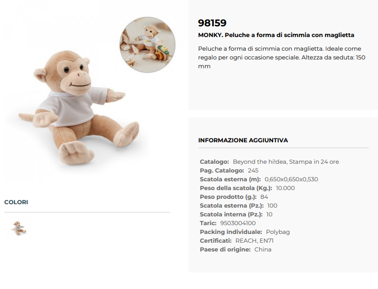Peluche a forma di scimmia con maglietta personalizzabile MONKY