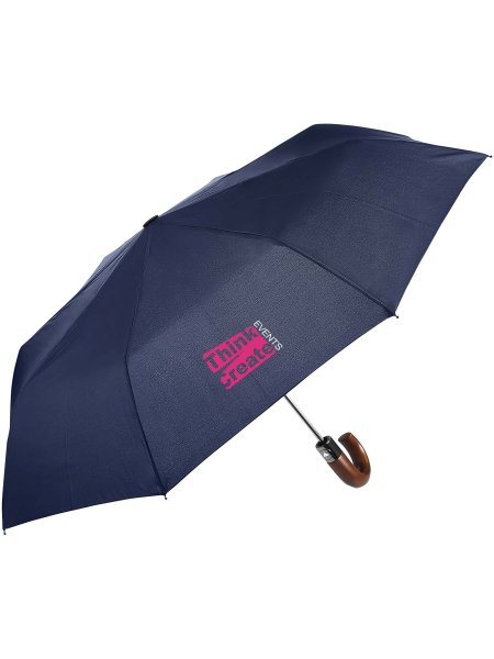 L'ombrello pieghevole Pepin è realizzato al 100% in poliestere riciclato, è pratico e resistente ed è caratterizzato da un sistema di apertura automatica che ne facilita l'uso. La struttura in fibra di vetro con asta in metallo e punte rinforzate garantisce una resistenza duratura, mentre il manico curvo in legno scuro aggiunge un tocco raffinato ed elegante. Consegnato con una custodia abbinata. Dimensione: Ø 95 x H 63 cm. Prodotto in Europa.
